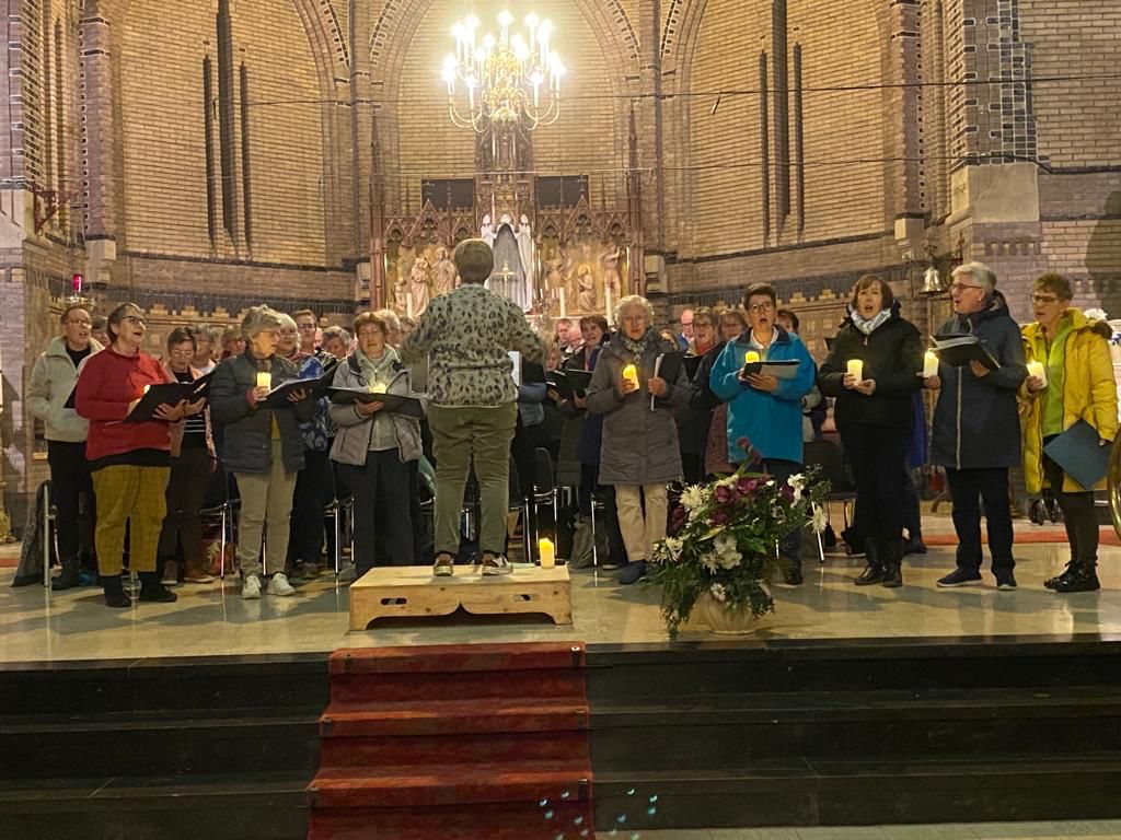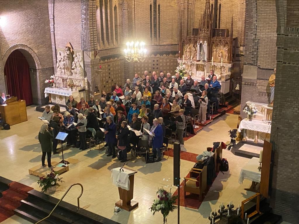 Er wordt al weken druk gerepeteerd voor het kerstconcert op 10 december. Tot nu toe gewoon in Enkhuizen met ons eigen koor, maar afgelopen donderdag kwamen we met de 3 koren bij elkaar in de kerk van Grootebroek voor een gezamenlijke repetitie.