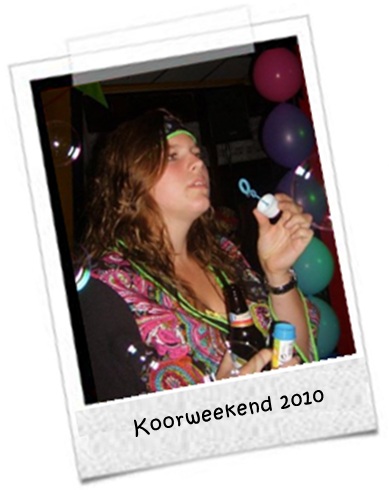 Bij welke partij zing je? Sopraan Wanneer ben je bij het koor gekomen? 14 januari 2005 Wat is je lievelingsnummer om te zingen? Time is running out, queen meldey, Doe Maar meldey en nog veel meer. Wat is je leukste koorherinnering? Wij waren een keer op koorweekend en toen was het thema sprookje, Op het feest avond zijn wij toen een aantal keer bij de boer die aan de overkant woont in onze kostuums gekomen en vroegen dan steeds of het feestje bij hem was. Die boer wist helemaal van niets en die stuurde ons maar steeds de stad in. Dit was echt grappig om te zien hoe hij steeds meer geïriteerd werd. Heb je nog andere hobby’s? Dwarsfluiten, hardlopen en schilderijen maken.